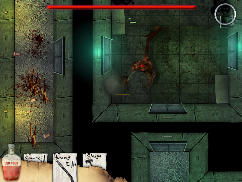 As the nameless anti-hero that you will steer through the game, you will visit all kinds of nightmarish places. There is no deep storyline yet, but it seems like your task is to bring down an (suprise suprise) mad scientist that somehow utilized occult powers to create all kinds abominations. So the range of enemies you will encounter is quite big: zombies, ghouls, mutants and even evil wizards and other kinds of bad guys that also would fit more in a medieval theme (think of a cult here that worships what is beyond reality).